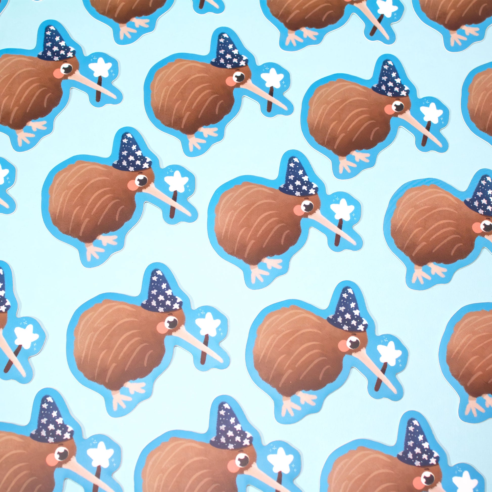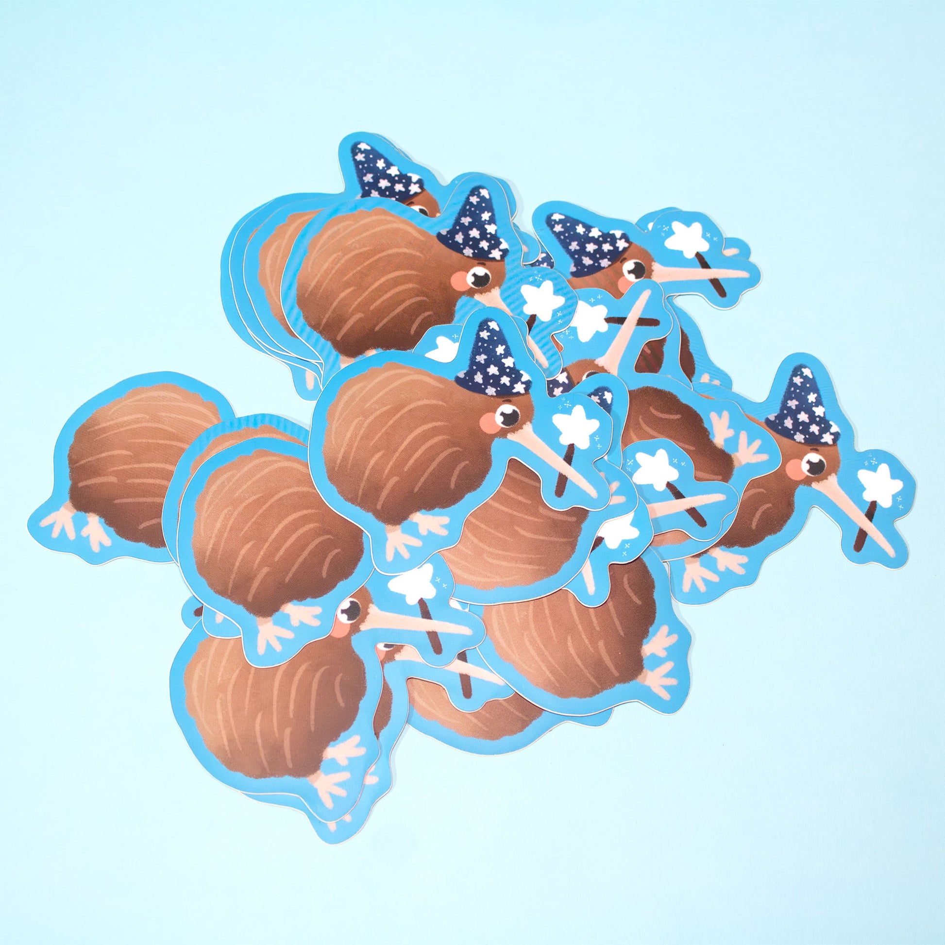A magical Kiwi Wizard! Perfect for decorating your notebook, laptop, water bottle, phone case, etc.